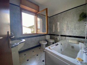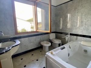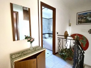 Salendo al piano superiore troviamo la zona notte: due camere matrimoniali di cui una con balcone , un bagno con vasca idromassaggio, una camera singola e un secondo bagno con doccia