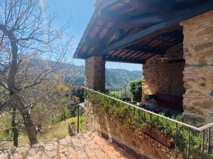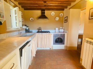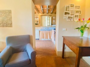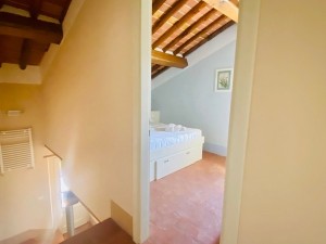 Primo Rustico : soggiorno con caminetto, sala da pranzo, cucina con porta che apre verso il porticato esterno e bagno. Al primo piano troviamo 3 camere da letto ( di cui una con terrazzo vista panoramica) e un bagno