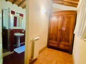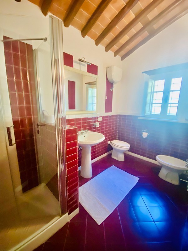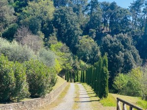 Tramite un cancello automatico si accede al tipico viale alberato Toscano, le piante di olivo e cipresso portano all' ampio spazio adibito a parcheggio auto (circa 8 posti )