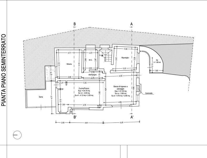 Piano terra : sala con camino, cucina, sala da pranzo, 2 camere matrimoniali e 1 bagno
