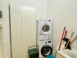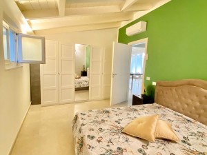 L'appartamento è così composto: un ampio e luminoso soggiorno, angolo cottura funzionale, una camera matrimoniale e una camera media , due bagni, ripostiglio ad uso lavanderia
