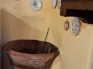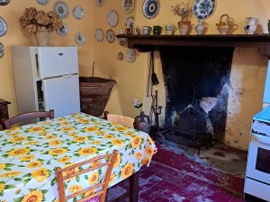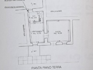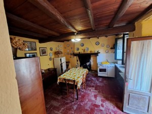 L'immobile è composto a piano terra da ampia cucina con caratteristico camino a legna, soffitti con travetti di legno e pavimento di antico cotto.
