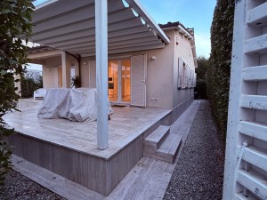 Si dispone su un unico piano terra , ed è composta da soggiorno con caminetto e veranda con copertura apribile, cucina attrezzata dove poter anche mangiare, 3 bagni tutti in marmo, uno con vasca e altri due con doccia.